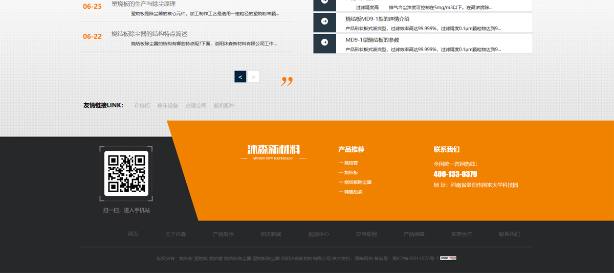 洛陽沐森新材料有限公司是一家集研發(fā)、生產、銷售超高分子有機物和無機物多孔過濾材料、燒結板(塑燒板)、燒結板除塵器、塑燒板除塵器、除塵專用濾材、多類別濾材應用及分子篩再利用為一體的綜合性生產科技型企業(yè)。年生產各種過濾材料46萬平方米。