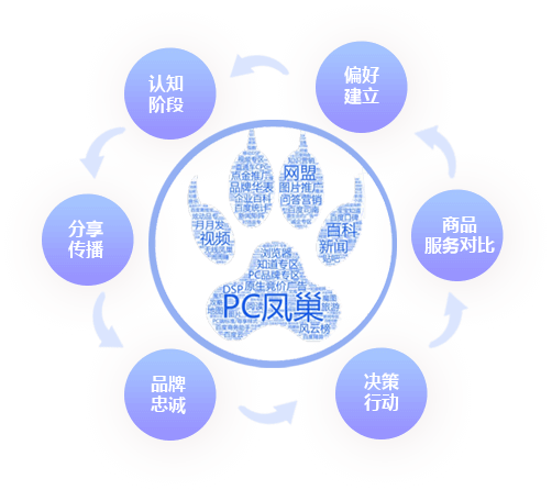企業(yè):通過全網(wǎng)產(chǎn)品根據(jù)網(wǎng)民虛擬人物畫像,追蹤網(wǎng)民,將企業(yè)產(chǎn)品的優(yōu)勢和特點(diǎn),呈現(xiàn)在網(wǎng)民面前,成為備選對象